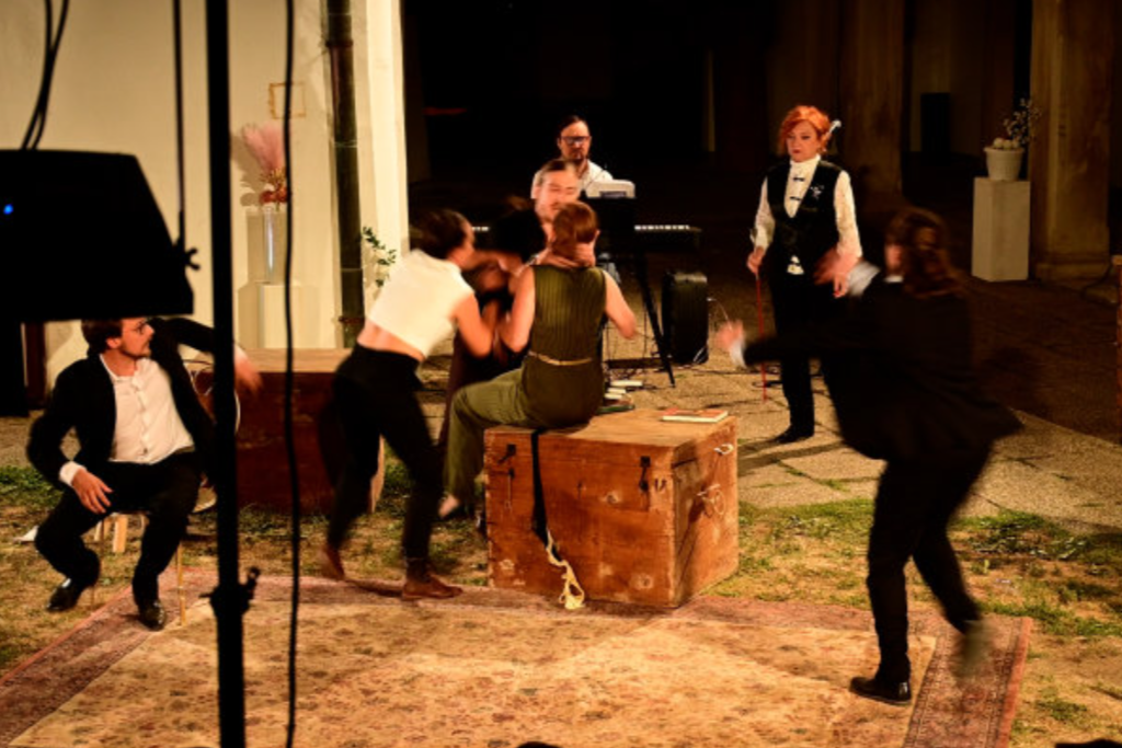 Naime, prije stotinu godina, 1925. skupina Varaždinaca okupljenih u Varaždinsko muzealno društvo, predvođena svestranim Krešimirom Filićem i još nekim istaknutim osobama, pokrenula je kulturno-povijesnu izložbu u Starome gradu, inicijativu koja se danas smatra početkom rada varaždinskog Muzeja. Stoga je ta ustanova, danas pod vodstvom agilnog Mirana Bojanića Morandinija, odlučila cijelu godinu, kako i treba u slučaju tako velike i važne obljetnice, njoj i posvetiti. Programi obljetnice, međutim, postavljeni su tako da ne obuhvaćaju samo ono što se uobičajeno čini o obljetnicama, a pogotovo što bi se intuitivno očekivalo u muzeju – čuvanje i prezentacija prošlosti. Vodeći se navedenim pristupom, Gradski muzej koproducirao je kazališnu predstavu u suradnji s Umjetničkom organizacijom Gllugl (zanimljivo, i Glluglu je 2025. obljetnička, deseta godina rada) koja, iako dio obljetničkog programa Muzeja, nije muzealizacija kazališta niti kazališna priredba o muzeju. Umjesto toga, autorica i redateljica Ksenija Krčar odlučila se na stvaranje svojevrsnog izmaknutog, ludičkog whodunnita zaodjenutog u rubno hororsku atmosferu.
