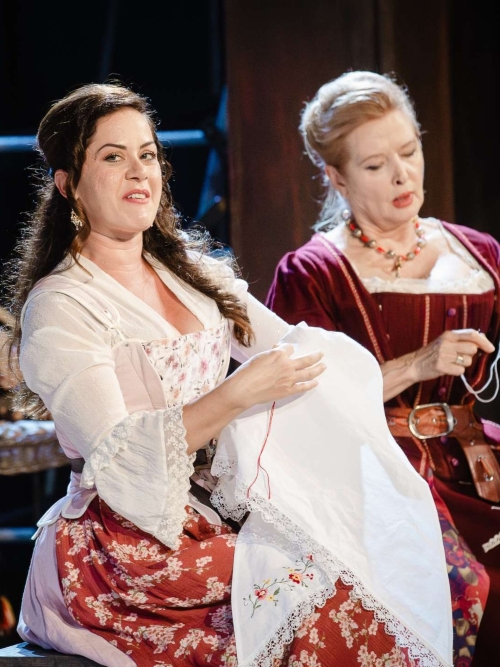 Iako bi svi glumci morali biti majstori svih idioma hrvatskoga jezika, koje bi trebali usavršiti i usavršavati na Akademiji dramskih umjetnosti u Zagrebu i drugim gradovima i državama u kojima su trebali usavršiti i glumu, to nije tako i već dugo razgovaramo o razlozima. Čini se da jedino autohtonost i izvornost govornika, materinski jezici presuđuju i jedino izvorni govornici, uz čast iznimkama, danas mogu progovoriti odgovarajućim idiomima. Koliko god se jezični savjetnik Maro Martinović trudio, svi glumci ne govore istim, dubrovačkim idiomom hrvatskoga jezika i to izrazito smeta (u) predstavi, remete se ritam i melodija, čak članovi istih kazališnih obitelji govore različito. Jedini nedubrovačkim idiomom, prema zamisli jezične adaptatorice, govori Stipe Radoja kao Duje, barkariol, kojemu također znatno pomaže splitsko glumačko podrijetlo, ali je, osim jezično, Radoja dominaciju pokazao i svojom dinamičnošću, energijom, brzinom, kao i vještom komunikacijom s publikom, željom da se svidi i publici i svojoj ljubljenoj i, ne smijemo zaboraviti, i eksplozivnom snagom i skočnošću koje je demonstrirao nekoliko puta u predstavi, kad s jedne tarace sunožno skače na drugu.