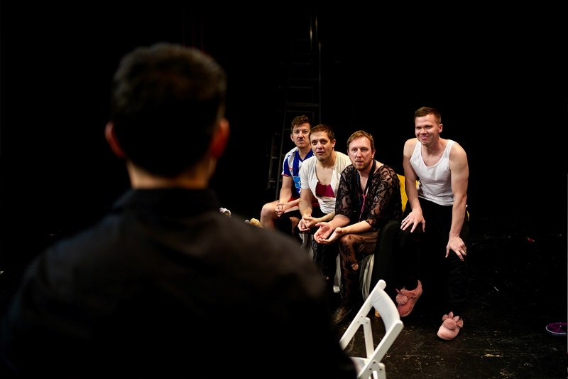 To što svatko ima po neki komad odjeće koji najčešće pripada ženskoj garderobi – negliže, najlonke, grudnjak, štikle, ironiziranje je muškosti i igra rodnim stereotipima. Ovdje je i to nedovoljno artikulirano i razvučeno, bez jasne svrhe i uzroka – nikad, primjerice, ne saznamo gdje su bili prethodnu večer ni kako su završili tako odjeveni.