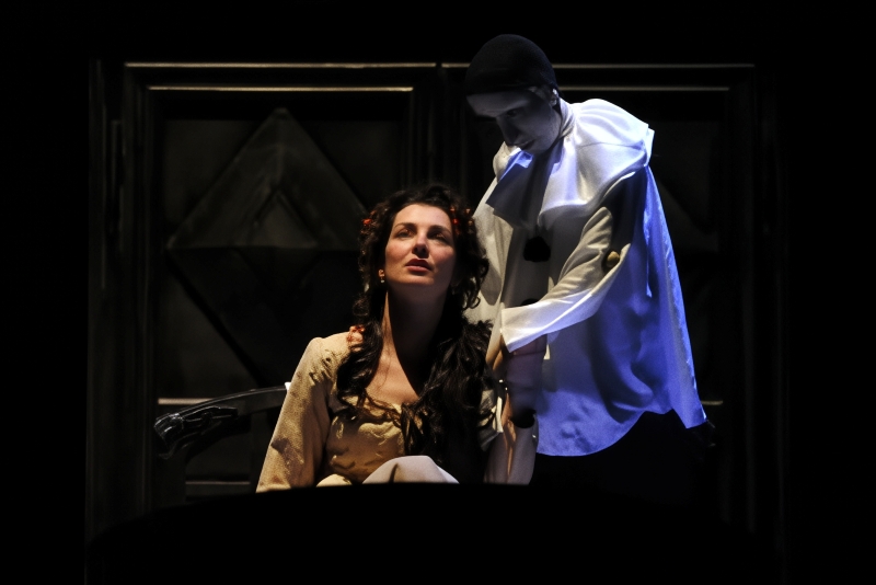 Činjenica da će mladić tek s maskom i kostimom Pierrota biti pripušten svojoj ljubavi i da će joj tek maska reći svoje osjećaje samo povećava kontrast između srca što šute u odijelu a zbore pod maskom, postavljajući vječno pitanje: skriva li nas maska ili pak otkriva i više no što bismo htjeli? Tu dihotomiju Kunčević rješava kontrastirajući žive glumce i lutke kao maškare. Upravo je taj dio predstave mnogim kritičarima bio prijeporan. Helena Braut u Vjesniku, osim što hvali protagonistice, u prvom redu Doris Šarić Kukuljicu (gošću iz ZKM-a), Anu Begić i Olgu Pakalović, izdvaja kako su „redateljske zadatke obavili po uputama lutkari posuđeni iz Zagrebačkog kazališta lutaka (Andrea Baković, Marina Kostelac, Maja Petrin, Matilda Sorić, Katarina Perica Kirin, Jelena Sušac, Žarko Savić, Branko Smiljanić, Anđelko Petric i dr.) no, time nisu polučili naročiti dojam.“