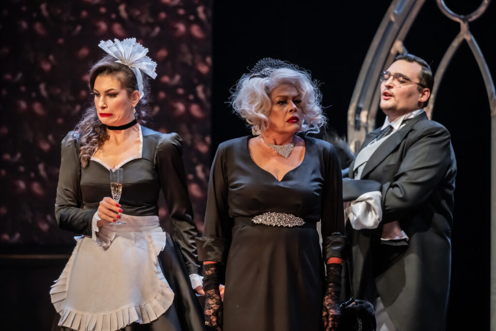 Domaćini su im Wadsworth, Yvette, Kuharica. Domagoj Ivanković brzo se prometnuo u vrlo traženoga glumca, i, iako se u većini predstave kao Wadsworth (nazvan prezimenom jednoga od najvažnijih pjesnika američkog romantizma) dobro kontrolira i vlada glasom i stasom, u nekim ga scenama redatelji, pa tako i redateljica Clueda, trebaju suspregnuti, jer npr. potpuno nepotrebno predugo traje njegov performans glumačkoga umiranja, uz neke privatizacije, zgodne dosjetke na probama, ali ne i u predstavi, a trebao bi se i pomaknuti od manire u intonaciji, glasu i pokretima, jer to za mladoga glumca dugoročno nije dobro. Vrlo je vješto napravio, prema kodovima svojih profesora pokreta na ADU-u, rekonstrukciju cijeloga događaja. Ornela Vištica kao Yvette mogla je puno bolje realizirati svoju ulogu, ali osim modifikacije jezika i jezikom, uz atraktivnu pojavu, nismo previše vidjeli, tako da jedina zaista dobra uloga ostaje Predsjednica. Kuharica / Poštarica je Anica Kontić, uvijek pouzdana, svoja, specifičnoga glumačkoga nerva, koja se sviđa publici i kojoj je pozornica pravi izazov i drugi dom, ali isto treba pripaziti kako karakteri ne bi podsjećali jedan na drugi; ponekad je preglasna i na granici iskliznuća, ali uvijek solidna, što uključuje i ulogu mrtvaca.