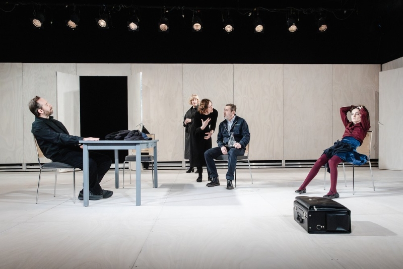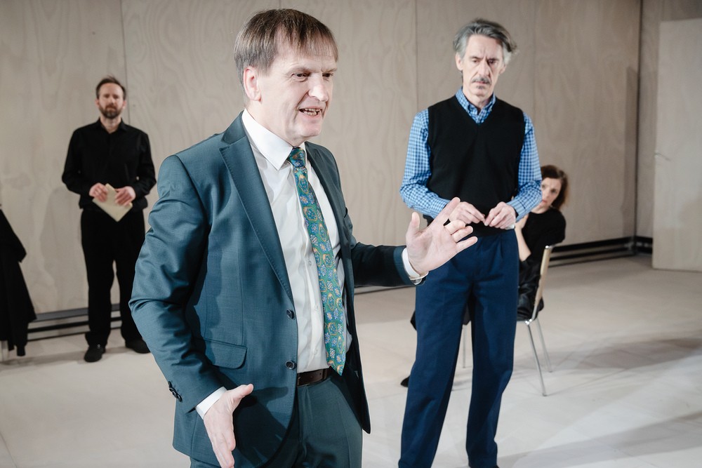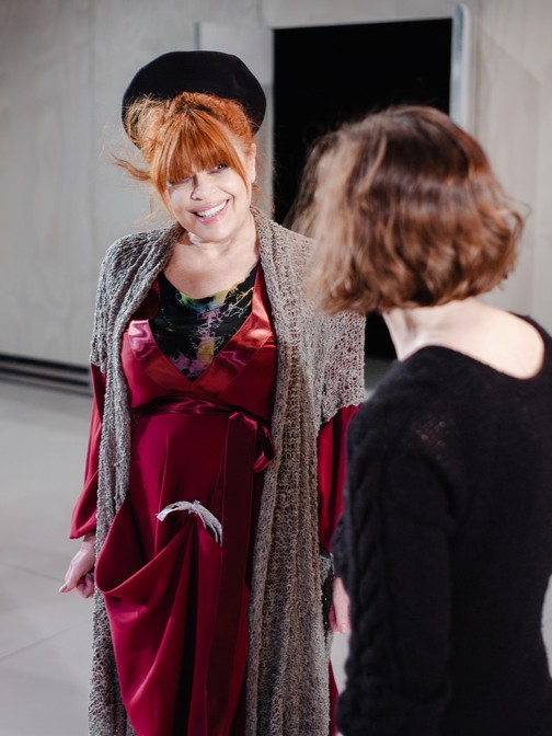 Dva dijela predstave povezuju i ženske uloge. U prvome je dijelu izvrsna Branka Trlin kao Slavica. Dugo je nismo vidjeli u tako izvrsnoj ulozi supruge i majke kojoj Matišić oduzima sluh i glas, a onda joj ih vraća i ona progovara vlaški jer je On tako htio. Izvrsno se kreće, duhovita je, poslije prelazi na zagrebački idiom, komunicira s Njim i osuđuje muža kad se sazna za njegovu tajnu, skupa s kćeri Anom u interpretaciji Mirele Videk Hranjec, liječnice s odjela traumatologije „koja se i na poslu i kod kuće bavi povredama i ranama koje nikada neće zarasti“ i koja se dobro snalazi među glumačkim veličinama. U drugome su dijelu također dvije žene, koje su i supruge i majke, s teškim i dubokim tugama, koje žive zahvaljujući lijekovima i odlascima na groblje, pandani svojih muževa, obje izvrsne: Ines Bojanić dugo nismo vidjeli u tako dobroj ulozi, igra pokajnicu Anu tužno ali vrlo uvjerljivo, kao i Linda Begonja, Marija, kontrolirana, dijelom povučena, potpora mužu, sa stalnom beckettovskom torbom u kojoj je projektor. Obje čupaju zube u svojim nezamislivim tragedijama, dok počinje kiša koja dodatno otvara tuge. Izvrsna ih režija postavlja u zanimljive šahovske suodnose, mizanscenski dijagonalno, udaljeno ili intimno, precizno i mudro.