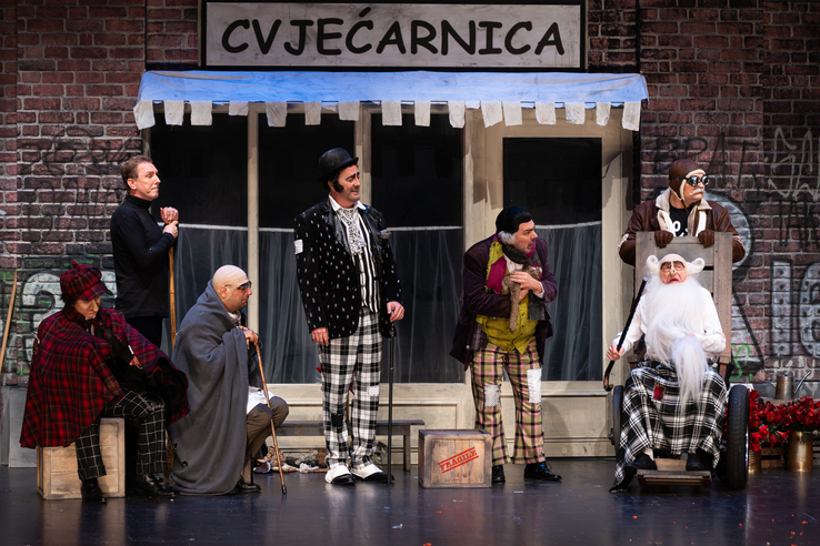 31.10.2025. Glumci su izvrsno kostimirani, imaju gotovo svi jako dobre maske, snalaze se u dramaturški i redateljski zadanim okvirima, ali to je daleko od crnohumorne komedije kojoj teže, ima doduše tu i dnevnopolitičkih komentara, ponekih i nepotrebnih pretjerivanja, kao što je dolazak Čaruge i tamburaša, tako da izostaje konzistentnost i raspršuje se priča i redateljski kod. ...pročitajte cijeli tekst...