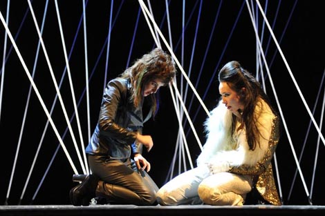 Međutim koliko redatelja zanima Shakespeareov tekst pokazuje već prva pojava Anonimusa prije otvaranja zastora – Alma Prica je u crnom odijelu s nacrtanim crnim muškim brčićima i dugom ženskom kosom. I dok gledatelj nastoji dokučiti što vidi (vjerojatno da kroz sonete o ljubavi na isti način mogu govoriti i muškarci i žene) smisao odslušanog mu je već djelomice pobjegao. I scena vizualno fascinira od prvog trenutka – scenografija grupe NUMEN i Ivane Radenović sastoji se od bijelih konopaca koji se zapetljavaju i oslobađaju poput rukavaca radnje i njihova likovna dojmljivost i funkcionalnost nedvojbeno je najuspješniji dio predstave. No, već kostimi Jelene Proković koji bi trebali predstavi dati dašak „trasha i glam rocka“ i pored zanimljivog izgleda nemaju pravu funkciju, jer je glazba grupe Silence potpuno drugačijeg usmjerenja, a i karikaturalnost likova na kojoj redatelj inzistira uglavnom nije takve provenijencije.