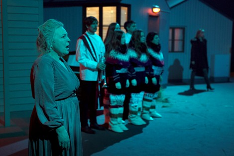 Ta otočna tragedija zbiva se u scenografiji Ruimtevaardersa (kako zajednička ostvarenja potpisuju dva scenografa Karolien De Schepper i Christophe Engels) koja i funkcionalnošću i vizualnom atraktivnošću daje iznimno sugestivan okvir zamislima Anne-Cécile Vandalem. Tri od tih svojevrsnih kuća lutaka su stambeni objekti, a četvrta, gotovo identična osim po koso postavljenom križu iznad vrata, lokalna je crkva za osmero stanovnika koji su ostali živjeti na otoku nakon što su klaonice, glavni izvor prihoda na Tugama, bankrotirale, a velika većina otočana napustila zavičaj.Tu su još i dva duha koje igraju Vincent Cahay i Pierre Kissling, izvodeći vlastitu vrlo uspjelu, prijeteću glazbu koja atmosferom podržava vjerovanje da oni koji su pokopani na otoku nikada ne odlaze, što se kasnije pokazalo jednim od bitnih elemenata zapleta. Najinovativnije scenografsko i redateljsko rješenje ipak je ekran u gornjem dijelu scene. Na njemu se pojavljuje ono što se zbiva u interijeru, a vrlo dobra glumačka ekipa (Anne-Cécile Vandalem, Bernard Marbaix, Jean-Benoit Ugeux, Anne-Pascale Clairembourg, Epona Guillaume, Séléne Guillaume, Vincent Lecuyer, Catherine Mestoussis i Françoise Vanhecke) ostvaruje izuzetan domet virtuoznim prilagođavanjem (često i u istoj sceni) interpretativnog stila, potpuno različitog za ekran (najčešće u krupnim planovima) i za scenu, tako da oblikovanje lica ostane jedinstveno i cjelovito.