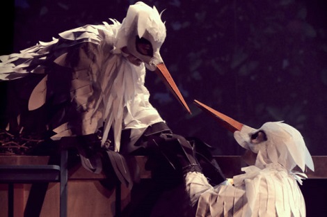 Amanda Prenkaj kao Malena i Zoran Pribičević kao Klepetan uvelike su zadani okvirima scenskih događanja, ali uspijevaju dosljedno i promišljeno a istovremeno zabavno kreirati svoje uloge, osobito kretanje i stav roda. Slično, iako u nešto manjoj mjeri zadanoj okvirom uloga, čine i Ante Krstulović kao Mucalo te Matino Antunović kao Seriozo. Korektan je Berislav Tomičić kao Stipan, čovjek koji pruža zaklon Malenoj tijekom zime, dok su Ana Marija Vrdoljak, Sanja Crljen i Mladen Vujčić animaciju ostalih životinja oblikovali tehnički dobro, no često zagušeno brojnim replikama.Ljubav na prvi klepet Malene i Klepetana u predstavi je rekreirana u naglascima podsjećanja publike na univerzalne vrijednosti i educirajući je o životu tih bijelih ptica. Čineći to, prihvaća obrasce oblikovanja klasičnih bajki i, posebice, basni. Unatoč određenim iscrpljivanjima značenja, zbog kojih su dijelovi predstave repetitivni, uspješna je u ostvarivanju tih dimenzija, uvodeći publiku u imaginarij svijeta iskrenosti i jednostavnosti Malene i Klepetana.