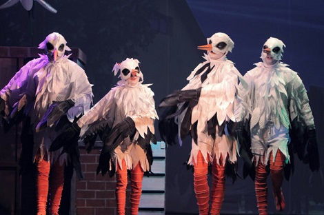 Edukativna poanta je shvaćena, nakon čega prizori u kojima se ona uvelike ponavlja, mogu djelovati simpatično no predstavljaju ponavljanje, iscrpljivanje istih motiva i poanti. Scenografija (Davor Antolić) uvelike se oslanja na video (autor Tomislav Krajcer) oblikovan u slogu animacije diznijevskog tipa, a koji služi proširivanju okvira zbivanja na prostore neba kojim rode lete tijekom migracije ili prizora prirode u okolici gnijezda Malene i Klepetana i Stipanova imanja. Iako mogu djelovati atraktivno, animacije kao temeljni element kontekstualizacije pojedinih prizora, također se nužno ponavljaju, što dovodi i do njihove repetitivnosti. Tome pridonosi i njihova promišljena, no ipak već u brojnim sličnim predstavama, filmovima, slikovnicama i inim kreacijama prvenstveno namijenjenima djeci, viđena likovnost. Kostimi Danice Dedijer, osobito oni roda, zanimljivo su i kreativno rješenje koje glumce preobražava u te gracilne ptice, uspijevajući ostvariti efekt lucidnosti a ne prerušavanja. Uspio je i scenski pokret Pravdana Devlahovića u vjernom, a nenapadnom oblikovanju specifičnog načina kretanja i stava bijelih roda.
