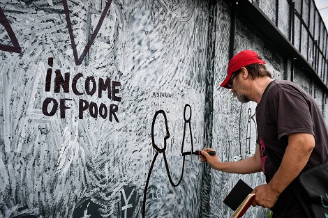 Grimm predstava Football and CircusJednako efektno, iako u potpuno drugačijem tonu, prošao je performans trilogija Behind the Wall – Borderline – Wheeze, the Wind of Change (Iza zida – Granica – Vjetar promjene). Trilogija je kolektivni projekt tri grupe kazališta - Radu Stanca, Stamp Festivala & Parabolla/Voices iz Rumunjske, Njemačke i Ujedinjenog Kraljevstva u suradnji s Danom Perjovschim. Cjelokupni projekt je društveno angažiran te progovara o problemima imigranata, a sve se odvija bez riječi, kroz pokret, pri čemu se posebno istaknuo prvi dio trilogije pod vodstvom Adriane Barza i izvedbi Diane Fufezan i Alia Deaka. Spomenuti tim stvorio je emotivnu i energičnu cjelinu koja kroz međusobnu interakciju i interakciju s publikom te Danom Perjovschim, koji za vrijeme izvedbe crta po zidu, ostavlja dubok trag na publiku i potiče na razmišljanje.