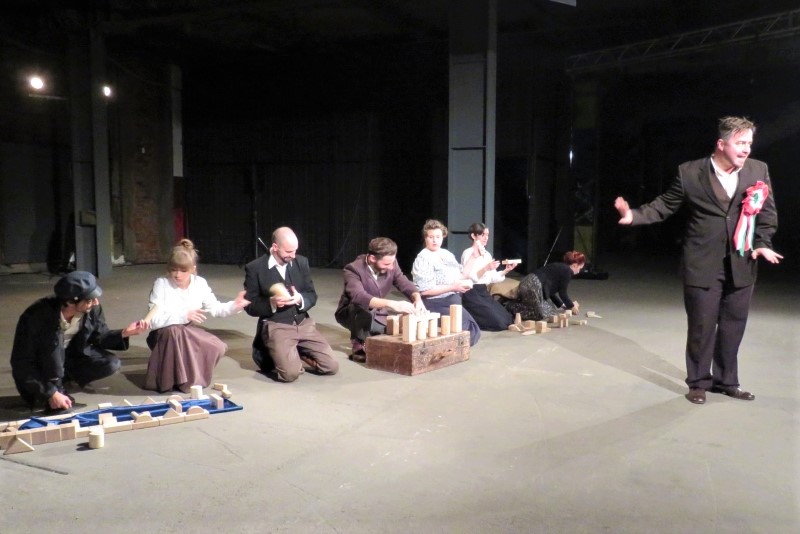 Izvedbu otvara i zatvara prosjakinja monologom na mađarskom o ljudima i gradovima te mističnim i gotovo proročanskim tonom s dozom fatalizma najavljuje fokalne točke predstave koje će se bazirati upravo na multikulturalnosti, multinacionalnosti, pluralizmu te našim ljudima u inozemstvu. Isti lik i zatvara predstavu te time zaokružuje priču o migracijama i onome što grad čini gradom. U prvom je dijelu predstave veći naglasak na samim gradovima te pritom gledatelji mogu stvoriti kulturni kontekst Rijeke početkom dvadesetog stoljeća. Ukupni se dojam stvara prelijevanjem nekoliko slika: od spomenutih jezika i dijalekata, novinskih zapisa te povijesnih crtica o javnim kućama, koje su tema mnogih predstava o Rijeci, do motiva brodova i luke te burne povijesti Rijeke koja je, u zaista efektnoj i pamtljivoj sceni, disala pod šest zastava.