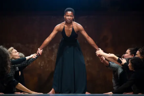 Žene u koru su snažne, odjevene u crno, baš poput glavne junakinje Medeje, koju ponosno, uznosito glumi na čistom engleskom talentirana Adura Onashile. Njezina Medeja nije vještica, čarobnica, boginja… Iako je vješta u spravljanju otrova, obična je žena. Žena koja govori strani jezik, u tuđem svijetu, s djecom, koju će u dvije laži iznevjeriti vlastiti otac, baš kao što je iznevjerio i nju.