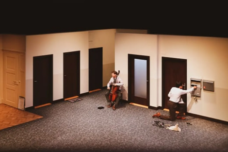 Uskoro se pojavljuje i drugi vidljivi interpret – glumac Graham F. Valentine koji se često pojavljuje u Marthalerovim predstavama. On prolazi kroz staklena vrata i nevidljivom vlasniku stana objašnjava kako ga je došao opljačkati. Kada mu taj kaže da bi mu rado pomogao, ali da nema čime razvija se jedini duži dijalog u predstavi stvarajući situaciju nalik nekadašnjem teatru apsurda. Potom Valentineov lik i njegov muzikalni partner izvode čitav niz besmislenih radnji. Valentine u njihovoj interpretaciji nerijetko koristi fizičke gegove nalik onima Jacquesa Tatija ili grupe Monty Python, ali dok ih oni koriste kao poantu ili vrhunac neke scene, Valentine ih ponavlja u beskraj, inzistirajući na besmislenosti svoje scenske pojave i onoga što ona predstavlja.