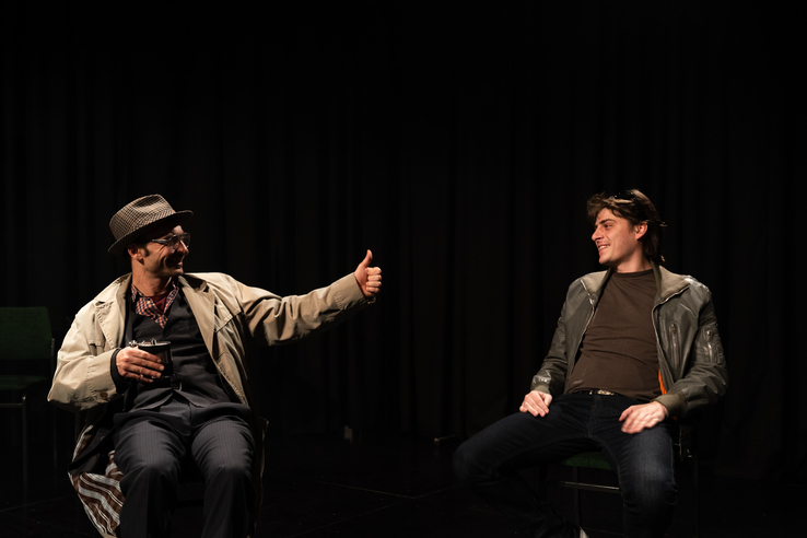Osim kazališnih i književnih spojnica, Rakan dramatičar i Rakan glumac se sa svojim kolegama i redateljem (koji, nadamo se, nije izostajao i / ili kasnio na probe), referira u čvrstom luku, paraboli autoreferencijalno na svoja i tuđa studentska iskustva na dramskoj akademiji, ADU-u. Izbor glumaca na ispitima, svojevrsnu prepotenciju kojom ih se po(d)učava, glumačke vježbe koje su ponekad na granici apsurda, scenski pokret koji je podignut na pijedestal a nije uvijek funkcionalan, tekstove koji kasno dođu do akademaca pa probe počnu već duboko u semestru, koreografiranje, pretencioznost, stav, pretjeranost, individualizirana, parcijalna vježbanja, duga čekanja početka proba za ispite u kojima se ništa ne događa, u predstavi su izvrsno režirani i glumljeni i dovode znalačku publiku do smijeha prepoznatljivosti.