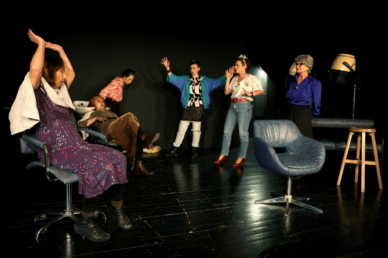 „Češljati nečiju kosu znak je pažnje, dobrodošlice.“ Vrlo uvjerljivo i profesionalno vlasnica salona, izvrsna, vedra i opuštena Sara Stanić Blažević, koja je osmislila i scenografiju, i novopridošla mlada frizerka, vrlo dobra Irena Tereza Prpić, koja se polako uklapa u žensko društvo izvrsnim transformacijama traženja sebe, peru kosu kao posebnu vrijednost, tapiraju, češljaju, formiraju raznovrsne frizure. „Frizure su način da se svlada, pokori ili iskoristi životna snaga koja je sadržana u kosi. (….) Frizura može postati znak za razaznavanje zanimanja, kaste, položaja, životne dobi, pa čak i samog ideala ili nesvjesnih težnji (….) U arhajsko doba Grci su u znak žalosti rezali kosu, a Rimljani su je naprotiv puštali da raste. (….) Klement Aleksandrijski i Tertulijan nisu dopuštali ženama da boje kosu ili nose vlasulje. Te su zabrane proizlazile iz duha pokajništva, koji je branio vještine zavođenja.“ (Rječnik simbola)
