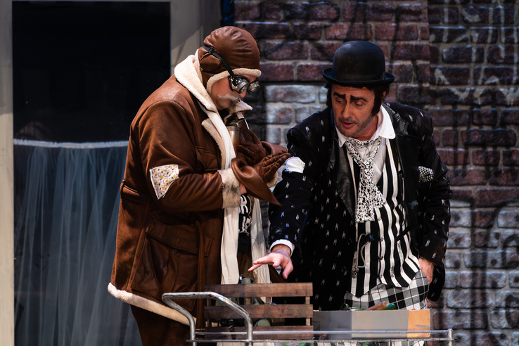 Glumci su izvrsno izabrani i stasom i glasom, jer ne može se predstava postaviti bez dobre podjele. Scenografija je zanimljiva, dočarava njujorški Bunker&Magnusov svijet s talijanskim štihom, cvijeće je plastično, bicikl(a) je na sceni, telefonska govornica također, jasno je istaknut natpis cvjećarnica, grafiti su na zidovima, kutije svugdje, otpad po sceni, ali nema prave atmosfere.
