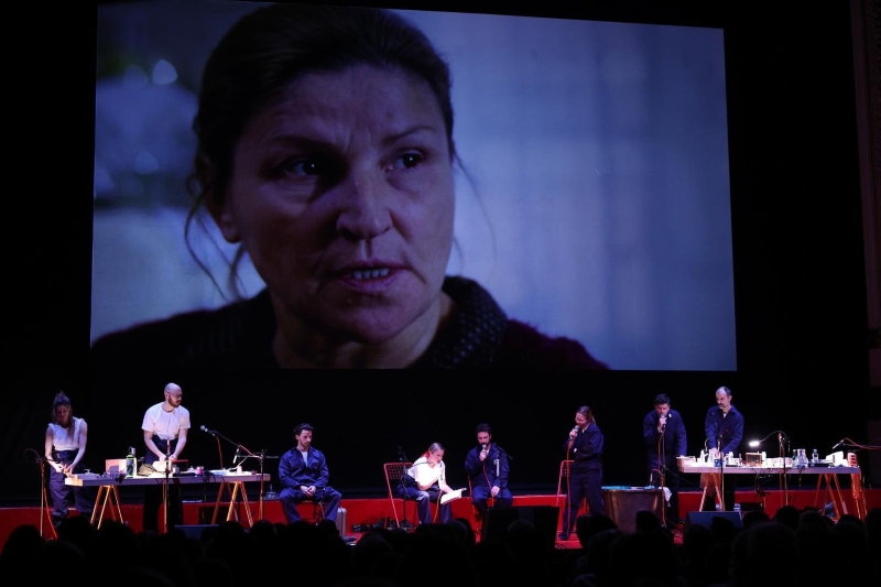 Glumci: Jelena Lopatić, Anastazija Balaž, Jelena Graovac Lučev, Damir Orlić, Jasmin Mekić, Edi Ćelić, Mario Jovev i Deni Sanković u otvorenoj dramskoj radionici, radionici umjetnosti, igrom usne sinkronizacije (lip sync), ali i pokretima i zvukovima prate glumce na filmskom platnu te ih svojom glumom oživljavaju, čine prisutnima na sceni. Predstava je dakle suvremena dramska satira uobličena suvremenim mehanizmom kazališne izvedbe; filmom iz osamdesetih godina i glumačkom tehnikom izvođenja filmskih replika uživo, gdje se glumci vidljivo trude uigranošću ostvariti vizualni sklad između zvuka i slike. U filmske replike ubačene su riječke, ali i hrvatske situacije: brod Galeb u riječkoj luci, krčki terminal, kvart Krnjevo itd., a izvrsna glumačka ekipa spremno i energično iz scene u scenu biva spremna zamijeniti uloge i odigrati sve karaktere.