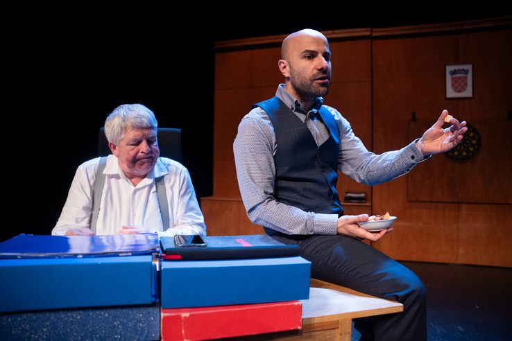 9.2.2025. Tekst Ivana-Gorana Viteza na sceni oživljava aktualnu političku situaciju, a zapravo je moćno sredstvo za refleksiju i kritiku. Bio je to komad pun izazova za glumački dvojac – Marka Hergešića i Bogdana Ilića. Prema viđenom, čini se da su bili pouzdane autorove (produžene) ruke – desnica i vehementna ljevica, u tvrdoj kohabitaciji. ...pročitajte cijeli tekst...