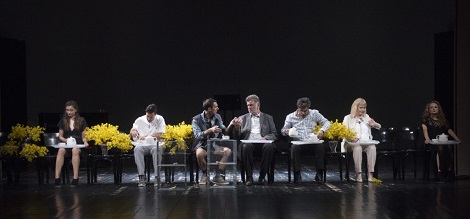 Glume: Stojan Matavulj, , Ljiljana Bogojević, Jan Kerekeš, Katarina Arbanas, Karlo Mrkša, Marinko Prga, Hana Kunić, Barbara Rocco, Robert Plemić, Mirna Medaković Stepinac, Marija Krpan© Leon Žganec Brajša, KAZALIŠTE.hr, 4. lipnja 2018.