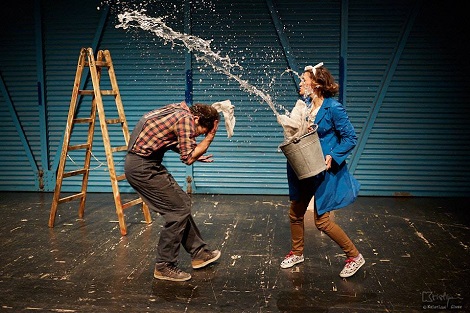 Daljnji problem je zasigurno i činjenica kako je Mađarić imao nekoliko funkcija, što mu je sigurno poremetilo izvanjski pogled i kontrolu nad scenskim uprizorenjem pa su glumci osim u temelju (dramskom tekstu) bili zakinuti i u čvrstoj ruci vodilji. Tako su i scenska radnja i publika smješteni na velikoj sceni HNK-a i odvojeni zastorom od ostatka kazališta, a scenografije nema. To jest, prostor scene je sam sebi scenografija, što ima logike jer je predstava temeljena na blizini publike glumcima, čime se potencirala atmosfera ali na blizini se samo i ostalo. Glumcima je dana sitna rekvizita poput vjedra, nekoliko krpa, kutije s alatom i drvenih ljestvi i sve što oni mogu je kontinuirano raditi repetitivne pokrete, bjesomučno vitlati krpe, sto puta se popeti na ljestve, pa tako gledamo kako Krsto vadi imaginarne čavle koje zaboravi izvaditi iz kliješta prije negoli vadi druge, pa ih malo vadi lijevo, pa malo desno po sceni, a jednako se događa i s Tonkom koja briše malo tu, malo tamo, ali zapravo ne ostavljaju uvjerljiv dojam obavljanja radnje. Jednako tako i promjene na sceni su repetitivne i šablonski rađene, bez nekog većeg redateljskog upliva. Ideja za redateljskom nenametljivošću je uvijek hvale vrijedna, ali ne i kad ta nenametljivost prelazi u izostanak.U ovakvom spletu svega navedenog kreacije Vladimira Tintora i Petre Blašković su jedino što drži pažnju publike, iako je nužno napomenuti kako su i oni pod utjecajem (ili neutjecajem) redatelja, dramaturga i autora bili evidentno nesigurni u pojedine situacije i motivacije svojih likova. Međutim, na mjestima na kojima su se imali za što uhvatiti, to su odradili izvrsno. Bili su uvjerljivi u svojoj interpretaciji, prenosili su atmosferu na publiku, živjeli su za i sa svojim likovima, nijansirajući vješto promjene kako su se događali obrati u scenskoj radnji te su uspješno ostvarili kemiju mržnje kroz gestu i mimiku, pojačavajući dojam uvjerljivim scenskim pokretom prilikom sukoba.