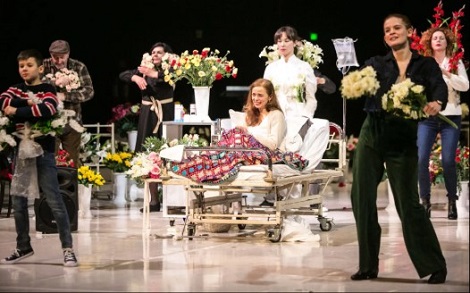 Stotine buketa raznovrsnog cvijeća, na tisuće cvjetova posvuda - a svaki čezne pokazati ljubav i naklonost - takav monumentalni a ogoljeni prostor scene nevjerojatno razigran u svojoj skulpturalnoj kobi; promjenjiv u sugestijama spiritualnosti groblja, začarane šume, glumačke garderobe, bolesničke sobe... Eto, tako Glumica Pascala Ramberta, pisca, redatelja i koreografa dočekuje svoju publiku u zagrebačkome HNK-u. Kao da kaže: Bit će tu svega - grandioznosti i fantazmagorije, povremeno bolne za prihvaćanje.Pascal Rambert - dramatičar, kazališni, operni i filmski redatelj, pripada najistaknutijim francuskim kazališnim umjetnicima našega vremena. Zagrebačkoj publici predstavio se prije nekoliko sezona u ZKM-u naslovima Moj duh i Zatvaranje ljubavi. Njegov je najčešći način rada potpuno autorstvo: režira, koreografira i vizualno oblikuje vlastite drame. Rado piše za točno određene ansamble ili glumce, pa su tako u njegovom impresivnom opusu i djela napisana za ansambl Comedie Francaise, potom za glumice Emmanuelle Beart, Isabelle Huppert, a 2015. Nastaje Glumica za ansambl Moskovskog hudožestvenog akademskog teatra, onog u kojem je praizveden Čehovljev Galeb. Slučaj je htio da Rambertova Glumica u Moskvi nije postavljena.