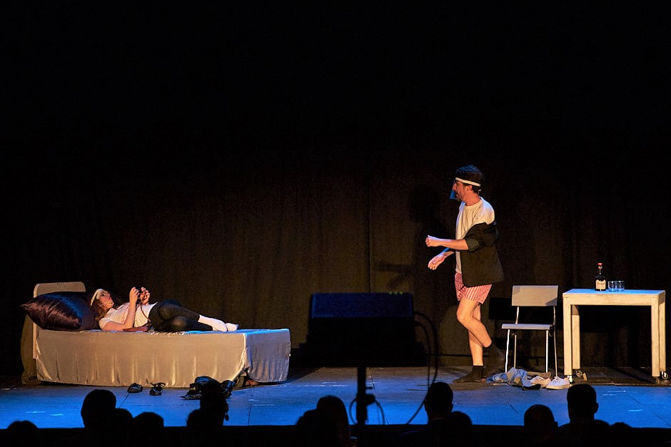 Ponajbolji dio predstave čini snimljeni film noir (snimatelj Josip Grizbaher) koji gledamo kao projekciju na pozadini scene, koji je uistinu zanimljiv te kvalitetno odrađen kako režijski tako i dramaturški i glumački, a za što je zaslužan Vladimir Tintor kao redatelj i Petra Blašković i Duško Modrinić kao Glumica i Pjesnik. Da ne bude sve tako crno, pobrinuli su se članovi ansambla s pojedinačnim proplamsajima na različitim razinama poput Petre Blašković koja nekako uvijek iz gotovo ničega uspije izvući nešto, nadasve komična bila je Ivana Soldo Čabraja kada dolazi kod ljubavnika, nepatvoren je bio Vjekoslav Janković u sceni sa svojom suprugom, zavodljiva Antonia Mrkonjić kao početak i kraj kruga, siguran u svoj lik Antonio Jakupčević kao Savršeni, simpatična i vrckava Selma Mehić zajedno s komičnim i razigranim Matijom Kačanom, sigurni Armin Ćatić u ulozi svevremenog općeg lika Kandidata te prpošna Antonija Pintarić u ulozi Slatke male.