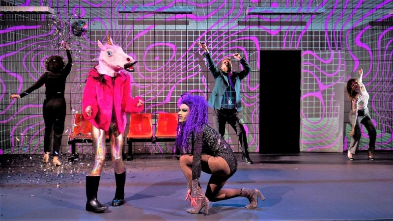 Glumci se kreću scenom, pokret je precizan do detalja, a vremenski središnji prizor zauzima vizualno atraktivan performans izvođača koji se naziva Spazam Orgazam, a nastupa kao drag queen, dakle muškarac koji se iz estetskih razloga odijeva, šminka i pretvara u karikaturu glamurozne žene, da bi tako zabavljao publiku. Kao takav, on biva silovan, a zanimljivo je kako se, suprotno konvencijama drag-performansa, u drugom dijelu predstave pojavljuje bez kostima.