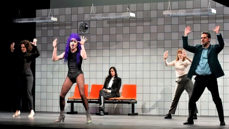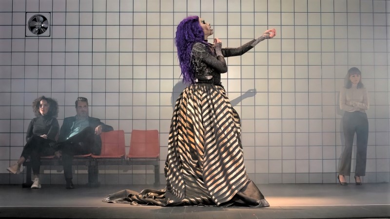 Glumci su isprva obučeni bezlično, u stereotipnu građansku odjeću, uz važan izuzetak (scenografija i kostimografija Zdravke Ivandija Kirigin). Okvir je, dakle, postavljen izrazito apersonalno, hladno, zatvoreno za emociju. Čak i za značenje, čije je odčitavanje u ovakvom prostoru sputano, jer je on bezličan, stvoren za bezličnost i neisticanje u funkcionalnosti, baš poput ambulantne ili kazališne čekaonice. Nikolićeva je predstava, međutim, sva u emocijama, njezina se struktura doslovno preplavljuje neizrečenim, neprorađenim emotivnim stanjima. Ili bi tako barem trebalo biti.