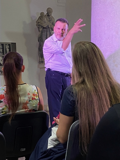 S obzirom na blisku nam književnu tematiku (iako bi zanimljivo bilo provesti anketu o tome koliko smo bili u stanju književnih djela prepoznati iz ovog raskošnoga špila), vrsno spojenu s prostorom i vremenom, motivirao nas je i dojam ostavio na sve nas u toj šetnji stoljećima književnosti i narječjima, tim bogatstvom kojim se malo koja zemlja (posebice ne ovako prostorno malena, na tek nešto više od 56 tisuća četvornih metara) može pohvaliti. Držić je pisao prije Shakespearea i Molierea – podučio nas je Ševo, zavirivši i u Grižulu (sjetivši nas na ambijentalnu izvedbu u sklopu OLJK-a 2008., u povodu 500 godina Držićeva rođenja, u režiji Zlatka Svibena), optrčavši koji krug po pozornici i malo se zagrijavši pa uletio u Pometa (dražesno režirajući publiku svaki puta kada je trebao uhvatiti dah i dok mu je znoj probijao košulju).