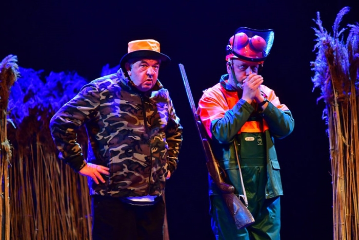 Najbolje su u predstavi i najkomičnije pjevačke dionice koje su i pauze i najave činova, kad glumci na prosceniju, referirajući se na našu i kazališnu stvarnost višeglasno pjevaju i komentiraju. Predstava počinje krajnje duhovito, s izvrsnim glumicama simboličnih kazališnih imena, Jasnom Palić Picukarić kao Žofom Balog i Sanjom Marin kao Ildikom Lončar, mimikriranima u seoske babe tračare i/ili arhetipske mudrice, podbrađene, gotovo neprepoznatljive, s doda(t)nim atributima, karikirane maksimalno. Pretjerivanje i hiperboliziranje kao mehanizam komičnosti koji glumice dosljedno provode u cijeloj predstavi (uz poneka nepotrebna pretjerivanja) izaziva vrlo dobre reakcije u publike. Nadali smo se da će se u tome ritmu, tempu i kodu predstava nastaviti, i da će svi glumci slijediti početne stimulanse.