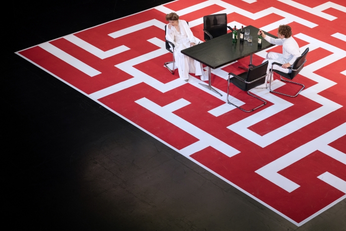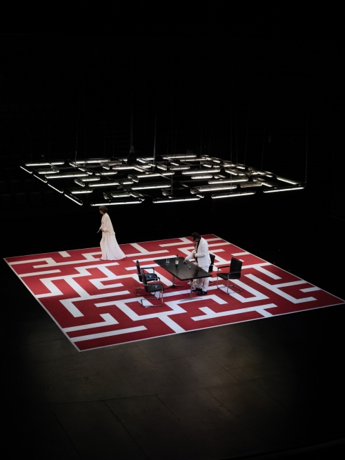 U pojedinim prizorima gledatelj je, ali i zbog vrhunskog teksta, doslovno zapljusnut emocijama sa scene. Tu svakako treba izdvojiti antologijski ispovjedni prizor u kojem u pijanoj noći kartaju otac i sinovi, a posebno je dojmljiv dijalog između oca Jamesa i Edmunda koji citira Baudelairea. No, mikrofoni (bubice) koje glumci koriste ipak nepotrebno odvraćaju pažnju gledatelja i guše glumački iskaz. Posebno je to izraženo u drugom djelu predstave, koji označava metafizička bjelina (neonsko svjetlo i bijeli kostimi) i scenografija puna simbolike (između ostalog i crveni tepih sa znakom labirinta). Glumci igraju u prostoru koji djeluje poput suvremenoumjetničke instalacije. Eklektična je to slika u kojoj je do kraja ogoljen sav užas ali i sva ljubav jedne obitelji. Istodobno je otkrivena dubina cijele kazališne scene, čime Buljan, čini se, odaje i svojevrsnu počast ljepoti pulskog teatra. Prvi se dio predstave, naime, igra ispred zastora na prosceniju, a koristi se i gledalište s minimalnom scenografijom koja crta obiteljski dom, koji to zapravo i nije – tek stol, četiri stolice i klavir. Buljan realističko uprizorenje drame iz prvog dijela, u drugom dijelu osuvremenjuje, i na djelu je simbolični realizam. Kao u ogledalu: na kraju dana koji je počeo idiličnim obiteljskim okupljanjem, u metaforičnoj, nadrealnoj eteričnoj bjelini svi su snovi rasplinuti, demoni prošlosti su i demoni sadašnjosti. Priča je univerzalna.