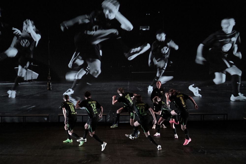 Svi su glumci-nogometaši izvrsno istrenirani i kostimirani (kostimografkinja: Marta Žegura), pomoćna trenerica/suigračica Anđela Ramljak kao Jessica Kowalski, Vedran Živolić kao suigrač Philip Winter, Ivan Pašalić je suigrač Hasan Selçuk, Toma Medvešek suigrač Thomas Behrmann, pokreti su im usklađeni, stilizirani, kreću se lagano i mekano, teške treninge svladavaju spremno i posvećeno, strastveno, puls im se vrlo brzo vraća na normalu, publika gleda ono što je rijetko pokazivano javnosti, žive treninge nogometaša, u ovom slučaju djelomičnu simulaciju, a ulazimo i u prostor tuševa, uz nepotrebno i predugo golo prošetavanje, kao i u prostor ordinacija Vedrana Živolića kao Klupskoga liječnika, Ivana Pašalića, Kirurga, Tome Medvešeka kao Asistenta kirurga.