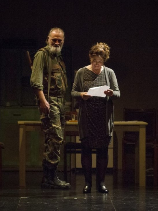 I učinila je to 63-godišnja zagrebačka glumica Sanja Vejnović (s impresivnih pet desetljeća karijere!) – članica Zagrebačkog kazališta lutaka koja je nakon dugo godina stala na kazališne daske. Poznavajući ju tek kao po mnogima jednu od najljepših glumica hrvatske scene, zanimalo me kako će utjeloviti samohranu majku Anku, skromnoga socijalnoga i financijskoga statusa, čija je uloga biti vezivno tkivo između dvaju naraštaja (djeda i unuka). Od tijesnog stana u izbjeglištvu načinivši tvornicu Hrvata u kojem je krivotvorila isprave, krštenice ili što je već bilo potrebno da iz BiH dospiju trajno u Hrvatsku ili im samo to bude privremena postaja na putu na zapad.Kako je predstava odmicala, sve me više osvajala svojom interpretacijom. I baš ta njezina nježna, sofisticirana vanjština, davala je posebnu draž ovlikovanju lika majke koju stvarnost primorava na grube, očajničke odluke i poteze. Dosegnula je svu emocionalnu puninu, bez potrebe za suvišnim i dugim objašnjavanjima, pružajući gledateljima raskošno kazališno iskustvo. Balansirajući neprimjetno između uloge majke i kćeri s jedne te glave obitelji koja priskrbljuje kruh na stolu s druge strane, dodatno je naglašavala svu težinu delikatnih emocionalne aspekte priče.