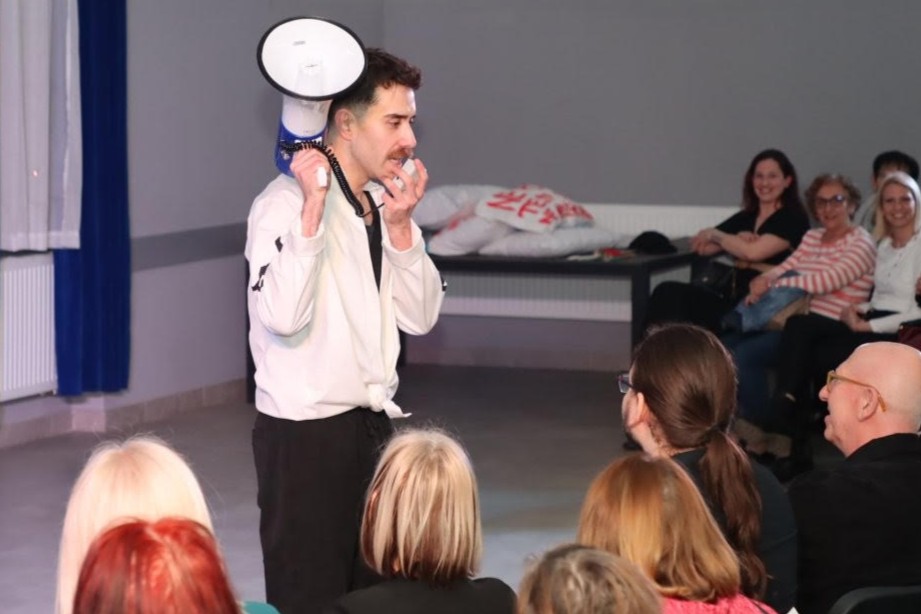 Njih je u spomenutom prostoru (a i dan kasnije u Hrvatskom domu Vukovar, na Svjetski dan kazališta) okupio redatelj Robert Raponja. Povod je bio predstava koju gledate konstantno zabavljeni i nasmijani – bilo sadržajem ili baletnom koreografijom, pojavom, dovitljivim (aktivističkim) stihovima, pjevanjem.