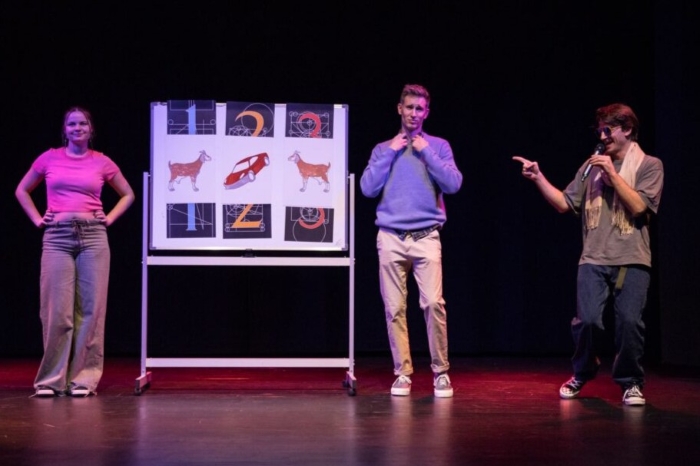 Matematika, jasno, nije tek ostala visjeti u zraku, lako je ušla u katarzični rap – zaštitni znak 55-minutne razigrane predstave čiji je autorski tim očito jako dobro osjetio bilo današnjeg hrvatskog tinejdžera i duh vremena koje nezaustavljivo hrli u sve veći zagrljaj umjetne inteligencije.