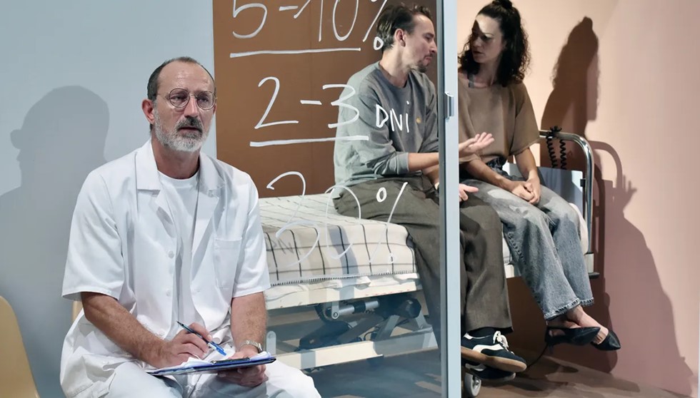 Helena Peršuh i Radoš Bolčina maestralno utjelovljuju pripadnike treće životne dobi, pomirene sa životom i oslobođene svih obmana i lažnih nadanja. Zdravi nihilizam i samoironija obrambeni su štit njihova polagana svakodnevna umiranja u kojem više nema mjesta za neke restrikcije (Evina majka uživa u cigaretama i nezdravoj hrani) i veća odricanja. Moglo bi se reći kako idu za onom maksimom Majakovskoga: „Treba otimati radost danima što bježe.“ Autentičnom kostimografijom podcrtane su njihove karakteristične staračke reakcije i ležerno držanje unatoč lošim liječničkim predviđanjima oko njihovih dijagnoza. Njihov optimizam u srazu je s Evinim i Danijelovim nagomilanim pesimizmom koji povremeno razbije uvijek dobro raspoloženi doktor s klinike za liječenje neplodnosti, naoružan za struku, u kojoj mu pacijenti dolaze brzinom pokretne trake, smiješkom i zadovoljnim fućkanjem.