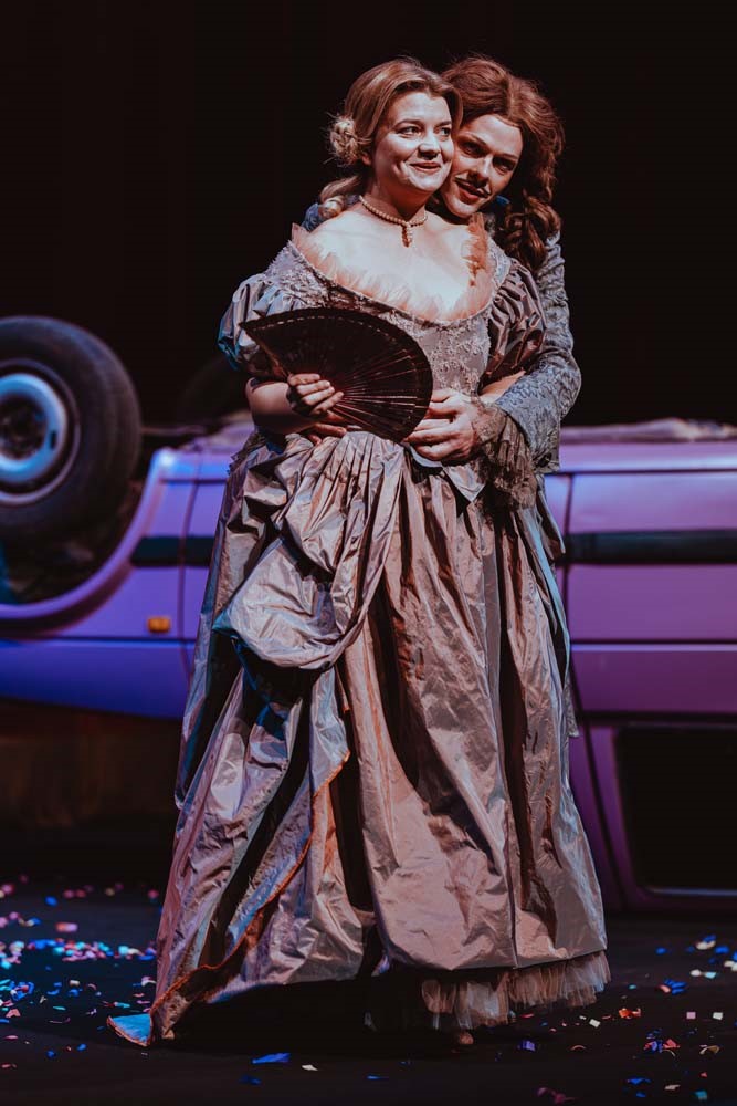 Od sama početka predstave razvidno je kako je Lolić upravo u glumačkim pojavama lucidno uvidio i njezin najveći kapital kojemu upečatljivo kostimografsko ruho pomaže tek dodatno zablistati. A upravo se to može i ustvrditi za cio glumački ansambl koji je nadasve bio vođen intrinzičnom motivacijom: osjetiti bilo tipičnih protagonista, udarati po paradoksima njihova ponašanja i manjkavostima karaktera. Plesnim pokretima, tjelesnom ekspresijom i vitalnim dijalozima glumci uspješno nadoknađuju manjak dramskoga prostora (zamišljeni francuski dvor, plesne dvorane, 17-stoljetne diližanse i aristokratske menze) koji je u konačnici i smišljeno kondenziran na puko otvaranje i zatvaranje automobilskih vrata, iz kojih uvijek simptomatično glasno izlaze protagonisti, kako bi pratilo i nagoviještalo razvoj dramske radnje iz prizora u prizor.
