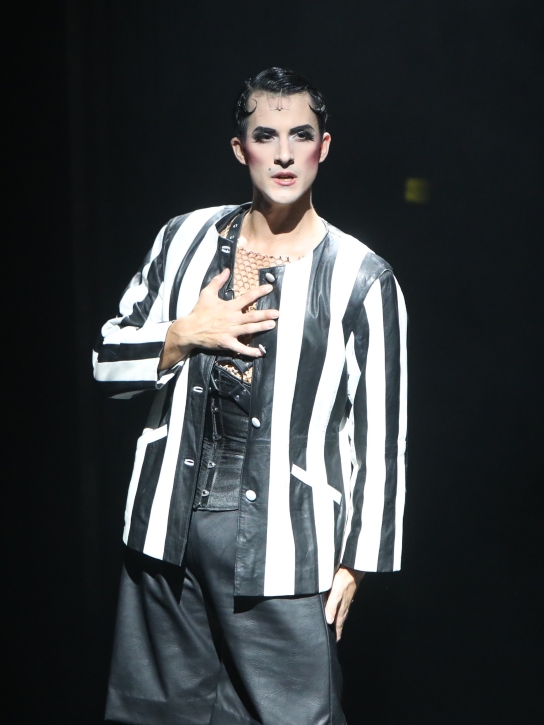 Toliko se dobro Čuić kao Emcee, simbol dekadencije koji predstavlja različite aspekte ljudske prirode i seksualnoga oslobođenja, transformira da u nekim identitetima u 150 minuta (preduge) predstave kao da gubi tjelesnu masu i kilograme ili ih vraća, ponekad je jak, obnaženoga torza, ponekad slab i sitan, gelirane kose ili razbarušen, mlad ili star, pun života ili očajan. Izvrsno pleše, pjeva, kreće se scenom, ne griješi u plesnome koraku i gesti, ne spotiče se o tekst. To je pravi glumac, koji suvereno vlada scenom, ne štedi se, uvjerljiv je preuzimajući niz identiteta, a u svim je karakterima izvrstan, razrađujući ih do u detalje, izvrsno nosi kostime Manuele Paladin Šabanović, čak i ženske, u ženskim cipelama ne inzistira na grotesknosti nego na ozbiljnosti i prikazu tuge muško-ženskoga principa i nestalnih identiteta, novonastale inverzije svijeta koja određuje živote i sudbine pred (na)dolazećim nacizmom 1930. godine.